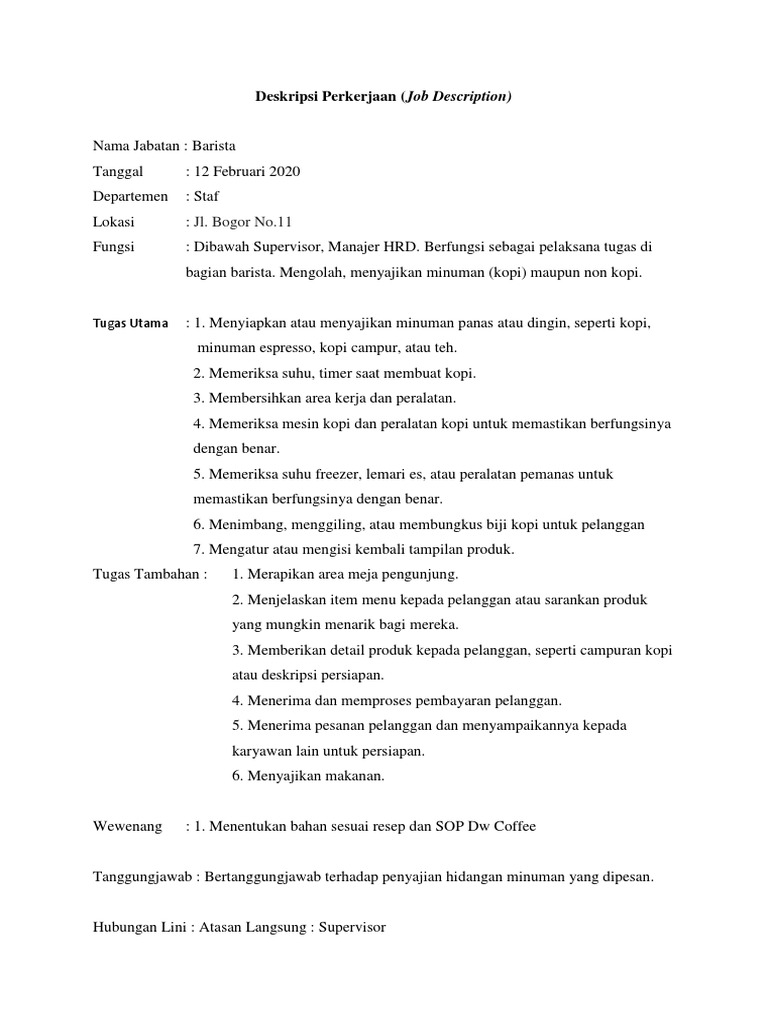 Job Description Karyawan Coffee Shop Pdf